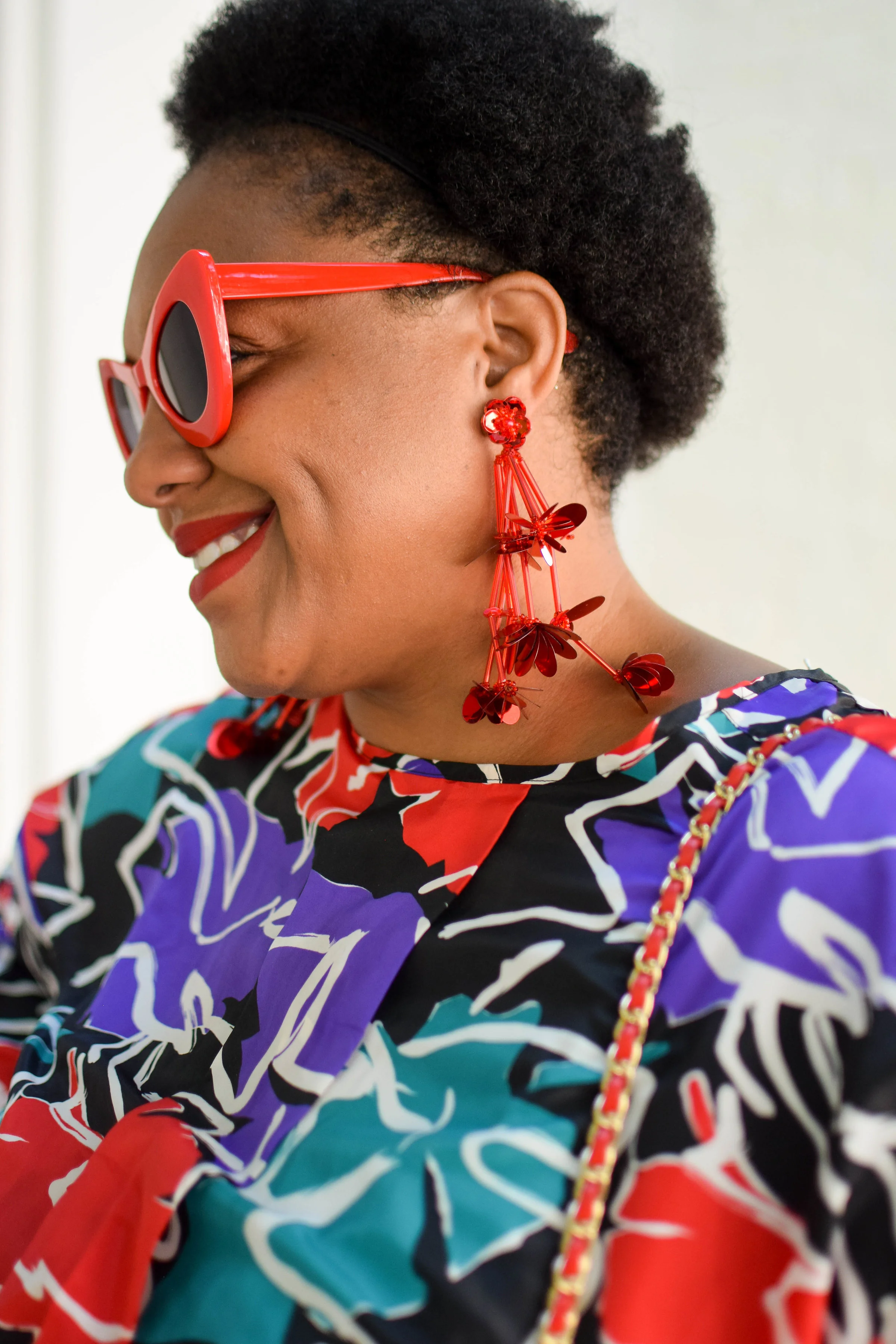 Retro blouses have always been a personal favorite of mine! They inspire me through their color combinations, along with the dramatic stylized technique. What I really find unique about this Retro Bold Patterned Blouse is its playful color combination of the bold purple, red, and turquoise. There aren’t many times I come across bold blouses that encompass each of these aspect, which makes finding blouses like this one even more exciting. Not only is this blouse very roomy, but is also very light. I decided to style this blouse simply, because of its rich personality. In styling, I would consider pairing a solid blazer with this selection, especially if you’re wearing this blouse during the Fall and Winter seasons of the year.